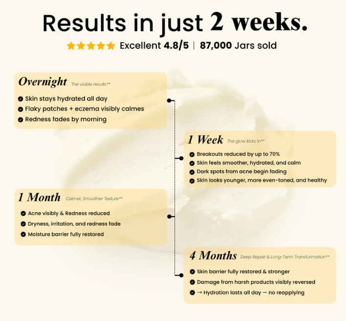 Expect softer, calmer, deeply hydrated skin that actually stays comfortable.